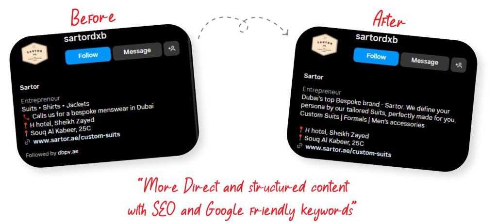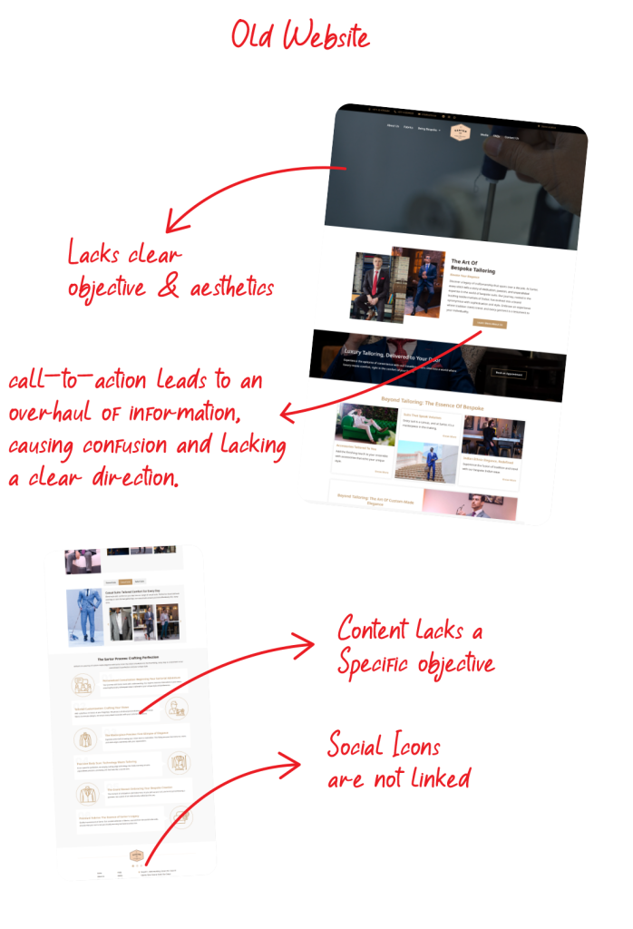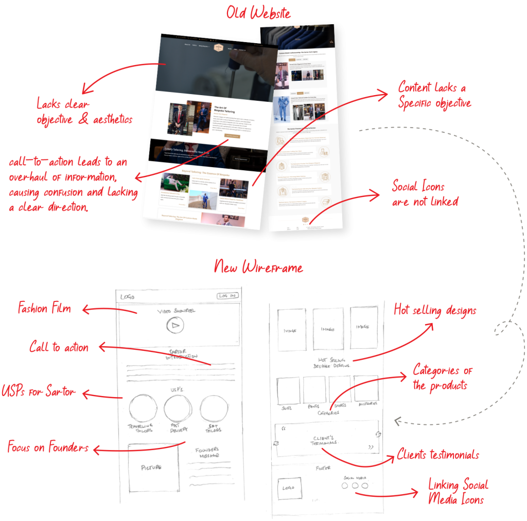 Take SARTOR, for instance—initially static, lacking CTAs, proper product positioning, seasonal trend showcases, and client testimonials. Contrast this with the new website—meticulously designed CTAs, interactive visuals, a captivating story behind SARTOR, a personalized touch from the people behind the brand, and dedicated sections highlighting USPs and seasonal trends. My approach ensures a website that thrives in the ever-changing landscape.
